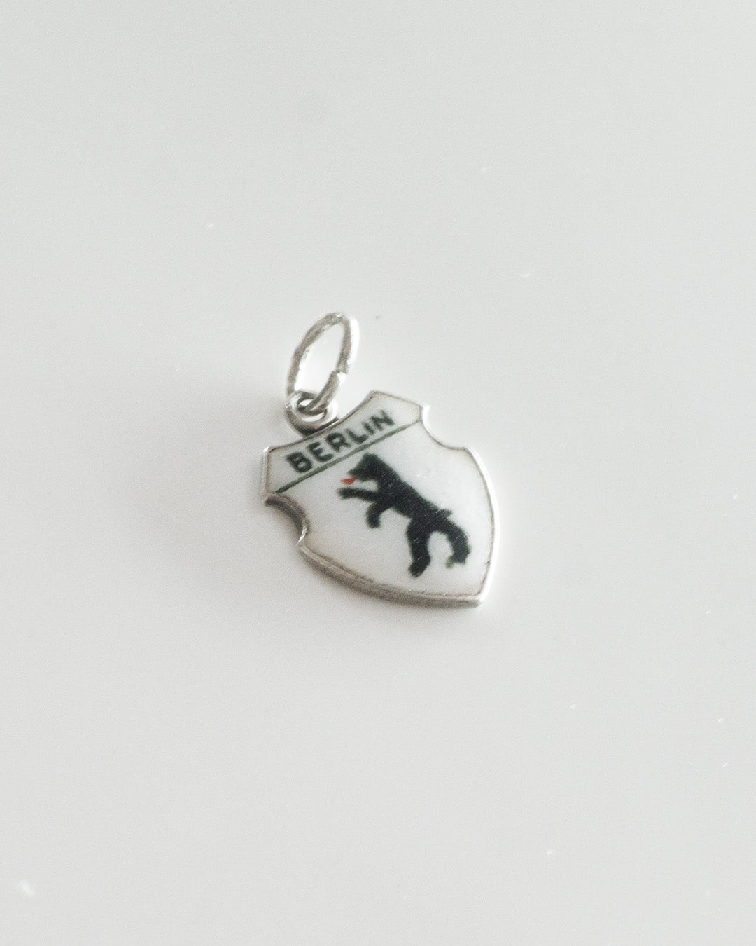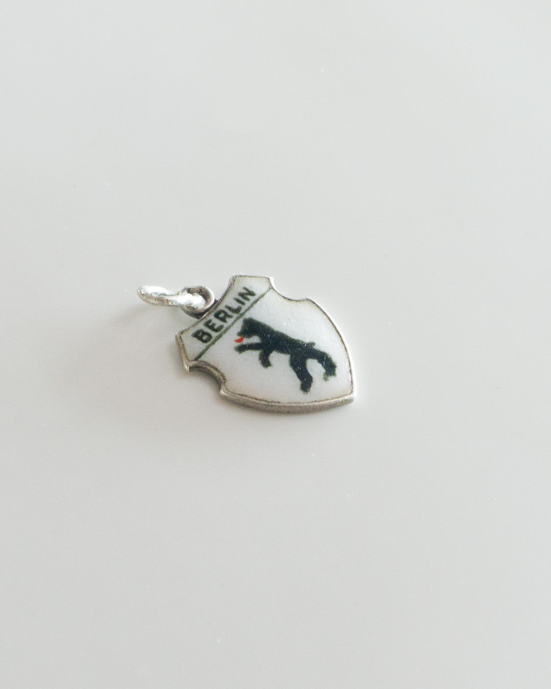 Berlin Charm – Vintage silver charm with enamel shield featuring the iconic Berlin Bear design. Stamped and tested, this collectible travel souvenir charm measures 1.1 cm wide and 1.86 cm high (including eyelet). A timeless keepsake for charm bracelet collectors or lovers of Berlin history.