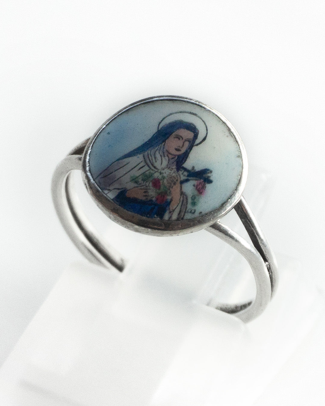 This vintage Pretty Madonna ring is made from 925 silver and is stamped. In size 47, its delicate design offers a subtle, elegant touch, perfect for those who appreciate vintage and preloved jewellery pieces.