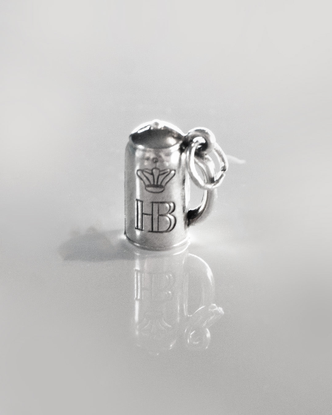 In München steht ein HB Haus is a second-hand silver charm shaped like a traditional beer stein, complete with the iconic HB engraving. This pre-loved piece brings Bavarian flair, Oktoberfest spirit, and a perfect pour of charm to your collection.