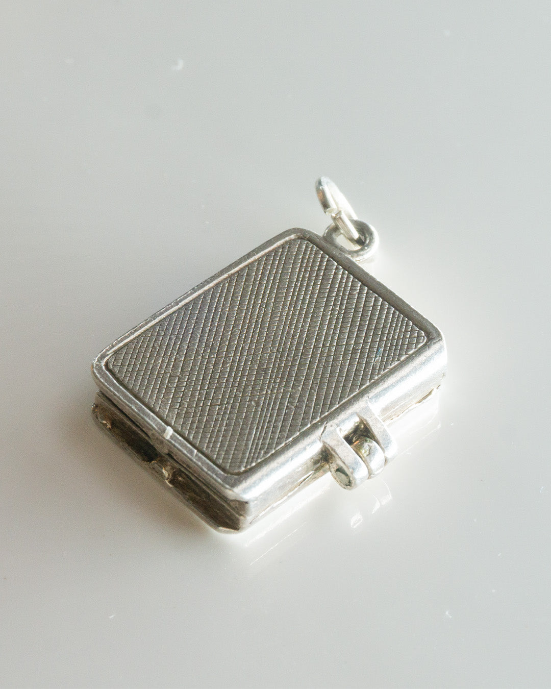 The Unicorn Passport Charm is a playful vintage piece in 925 sterling silver (tested, unstamped). Designed like a miniature passport, it opens up to reveal tiny paper pages inside – a whimsical detail for dreamers, travelers, and collectors. A unique pre-loved silver charm full of character.