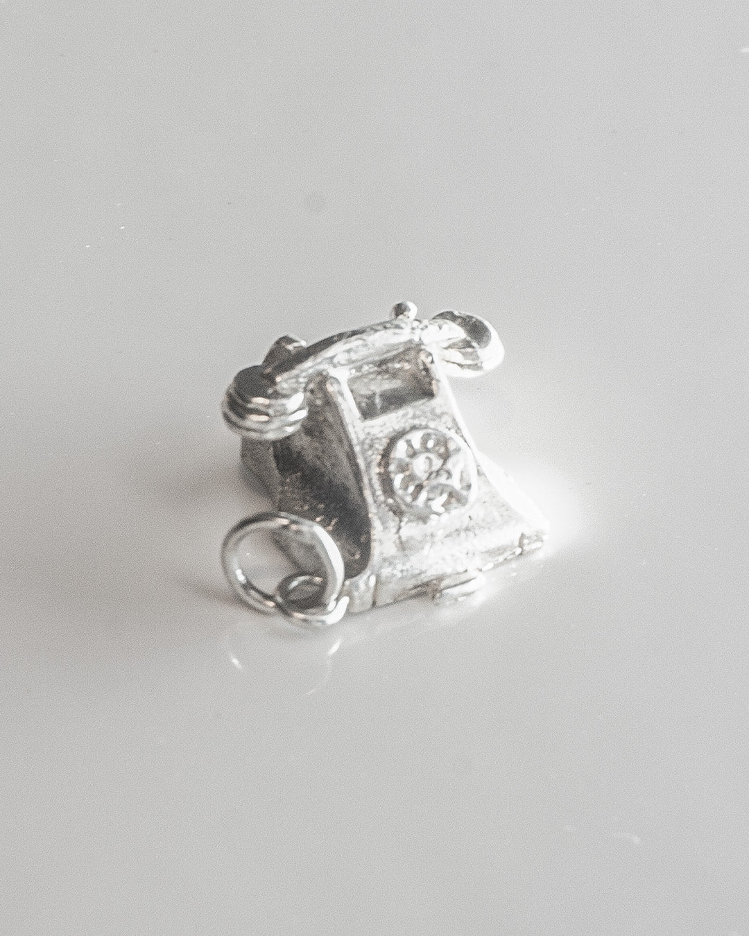 The Who You Gonna Call? Charm is a vintage silver telephone pendant full of retro character. Crafted in tested silver, this pre-loved charm captures the nostalgia of rotary phones and makes a playful, collectible addition to any jewellery story.